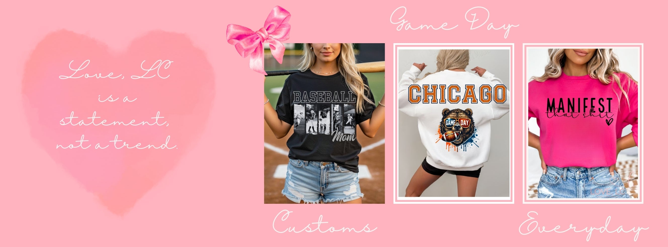 Struggling to find the balance between work, home, mom life and nights out? We want to bring you the perfect addition to make you feel amazing no matter what you are doing. Our styles are made from top quality materials and in house graphic designs exclusive the Love, LC.
